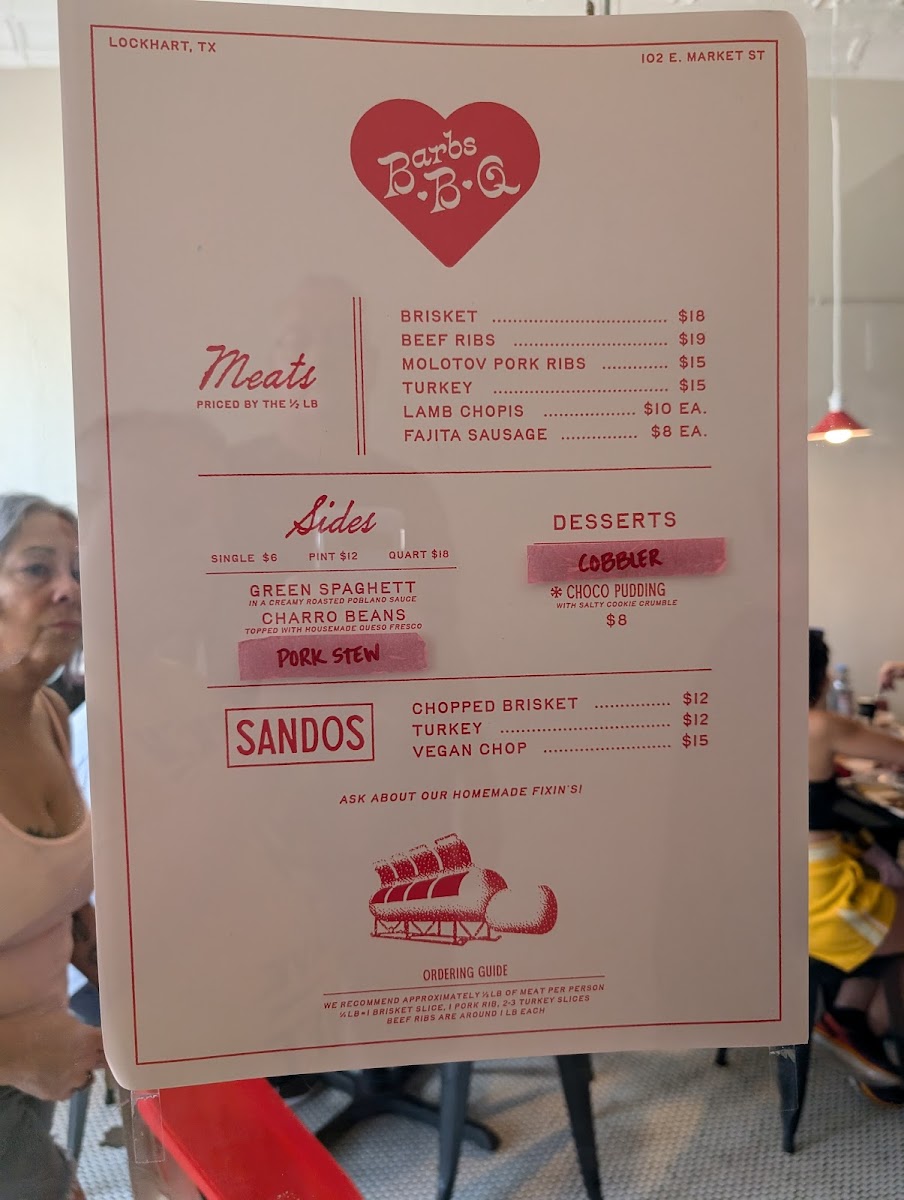 Welcome to Barbs B Q, where culinary excellence meets a fun, laid-back atmosphere in Lockhart, Texas. This gem offers an irresistible menu that showcases mouthwatering barbecue options, featuring specialities like brisket, pork ribs, and lamb chops, all praised for their tender perfection and robust flavors.